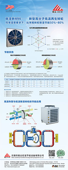 無錫市聯眾控濕節能設備有限公司成立于2004年2月,是一家長期致力于把空氣吸附分離技術應用于空氣處理設備的科技型中外合作 企業,主要研發生產轉輪除濕機組、熱泵除濕機組、空氣與空氣熱 能交換回收機組、蒸發冷卻空調機組、有機廢氣凈化處理機組等非 標空氣處理設備。隨著生產規模的不斷壯大和產業化的精細分工, 聯眾公司與2011年10月在江蘇省宜興市萬石鎮工業園茶亭路8號, 一期投資5000萬元,置地25畝、建標準工業廠房10000平方米和辦 公樓3000平方米,重新注冊成立江蘇聯眾聯勝節能設備有限公司。 企業領導層決定確立江蘇聯眾聯勝公司以研發生產蒸發冷卻空調機 組、有機廢氣凈化處理機組等大型節能環保空氣處理設備為主;而無錫聯眾控濕公司則在無錫繼續以研發生產轉輪除濕機組、熱泵除濕機組、空氣與空氣熱交器為主。在國內暖通空調工程領域,聯眾控濕公司研發各類轉輪除濕機的技術能力、生產各類轉輪除濕機的 裝備制造工藝水平處于本行業前沿。